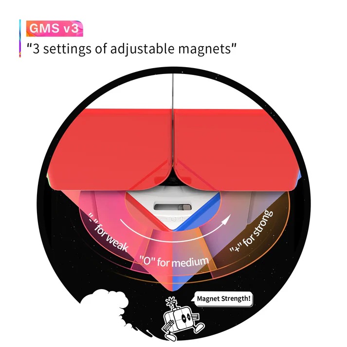 De Leap-variant introduceert instelbare magnetische kracht en maakt gebruik van het geavanceerde hoek- en kernmagneetsysteem van de GAN 11 M Pro. In combinatie met de technologie voor groothoek magnetische uitlijning zorgt dit voor een soepele draaibeweging, betere uitlijning en verhoogde prestaties.