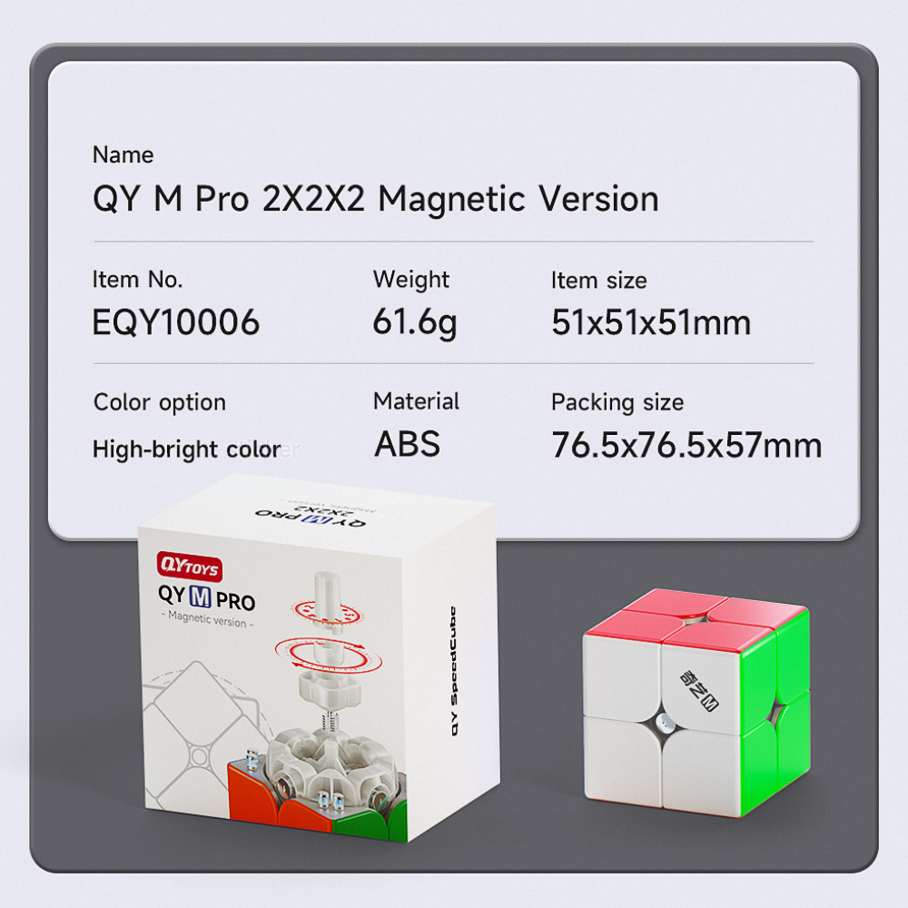 De QiYi M Pro 2×2 Magnetic is een moderne en betaalbare 2×2 speedcube uit de populaire Pro-serie van QiYi. Deze cube is ontworpen met prestaties in gedachten en biedt een verrassend goede combinatie van snelheid, stabiliteit en controle, zowel voor beginners als gevorderde cubers.