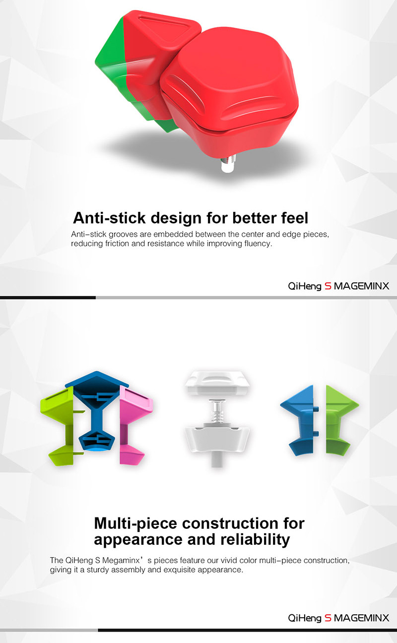 De Qiyi Megaminx Qiheng is ontworpen met oog voor detail en precisie. Met zijn soepele draaibewegingen en verbeterde mechanisme zorgt hij voor een vloeiende en moeiteloze puzzelervaring.