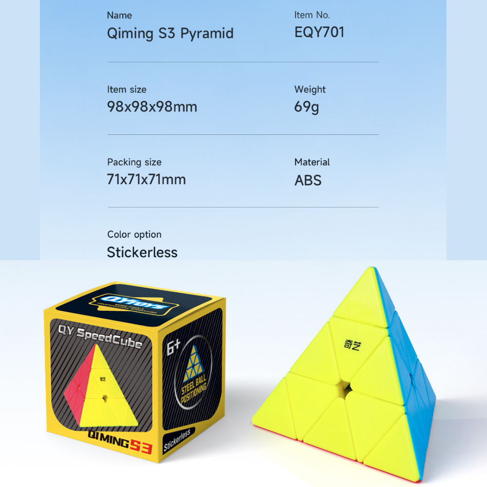 De QiYi QiMing S3 Pyraminx is een toegankelijke en budgetvriendelijke piramide-puzzel, ontworpen voor beginners en hobby-cubers die een goede draaiervaring willen zonder hoge kosten. Het is de derde generatie in de QiMing-serie en biedt merkbare verbeteringen in soepelheid, stabiliteit en controle ten opzichte van eerdere modellen.
