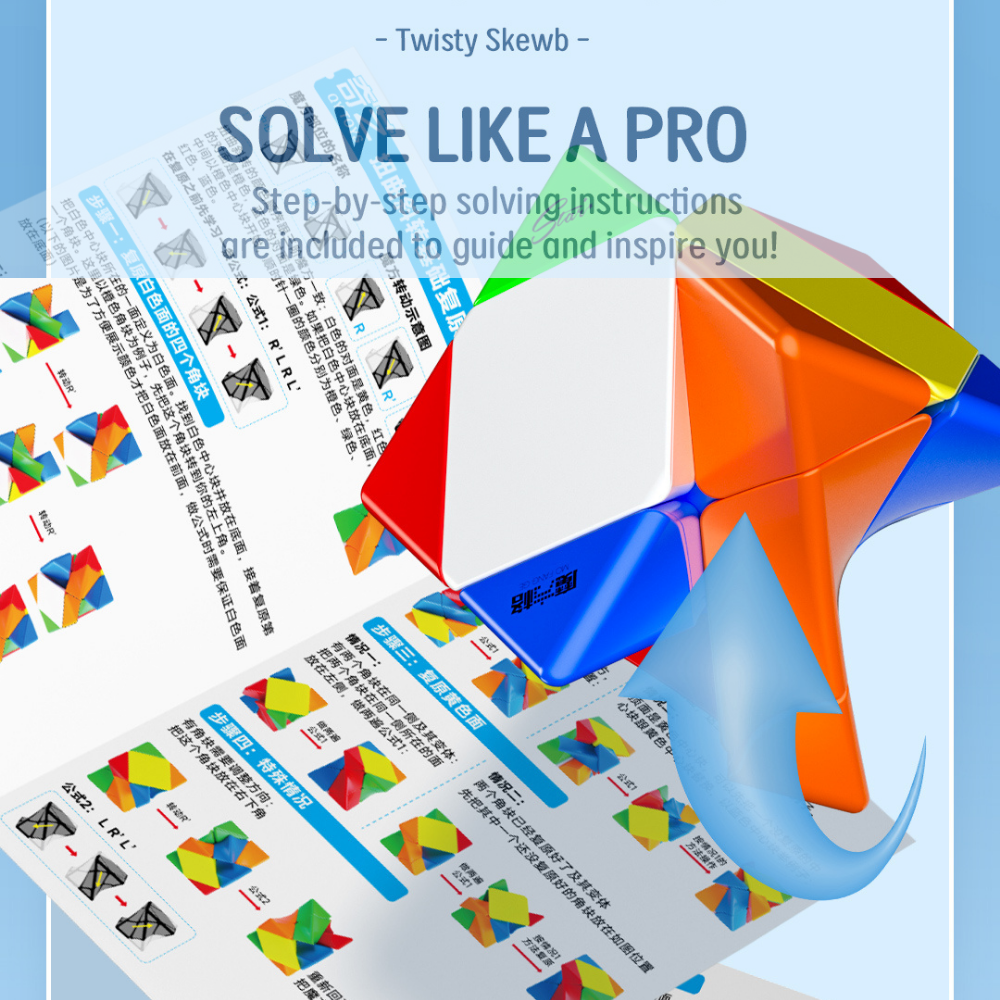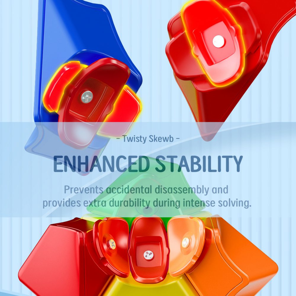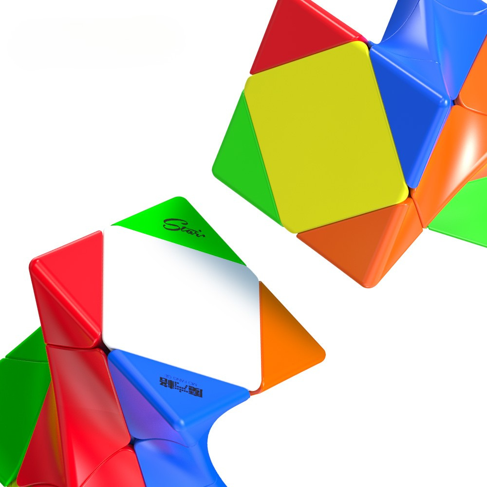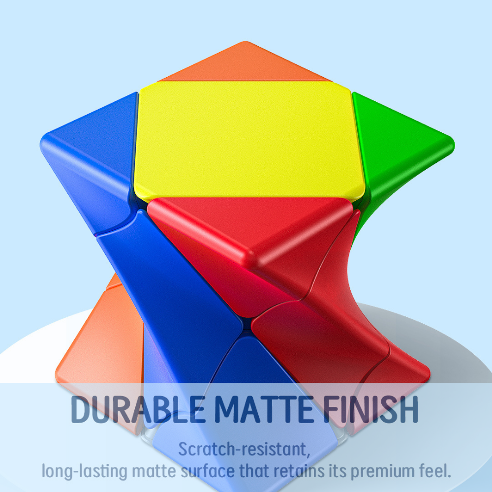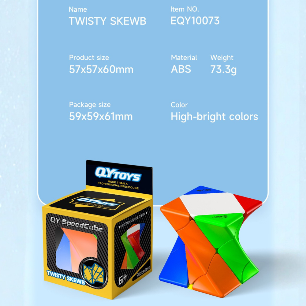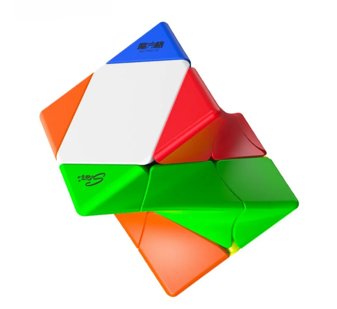 De QiYi Twisty Skewb is een creatieve en speelse shape-mod puzzel die afwijkt van de klassieke 3×3 kubus. In plaats van rechte, symmetrische lijnen heeft deze cube een gedraaide (twisted) vorm, waardoor het lijkt alsof de puzzel permanent verdraaid is — zelfs in opgeloste staat.