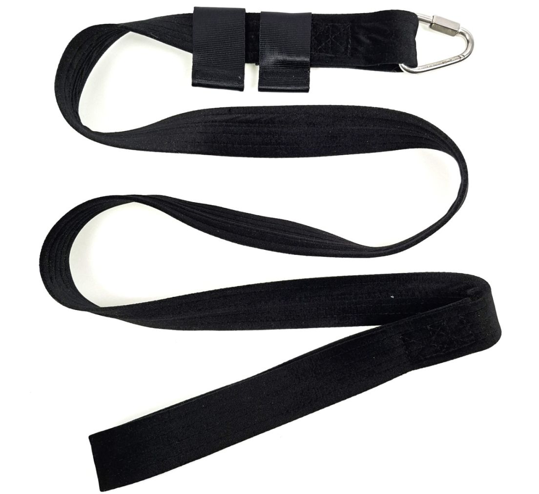 Bij veel gevorderde aerial hoop-technieken werk je bovenop de hoepel en maak je veel gebruik van je knieën, ellebogen of voeten om te haken. Of je voertinversies uit waarbij je direct op de strap steunt. Veel klassieke straps zijn betrouwbaar en robuust maar kunnen minder prettig aanvoelen op de huid. Daarom heeft deze strap een bijzondere velvet coat(flueel). Ideaal voor artiesten die comfort willen combineren met een elegante uitstraling zonder hiervoor veiligheid op te geven.